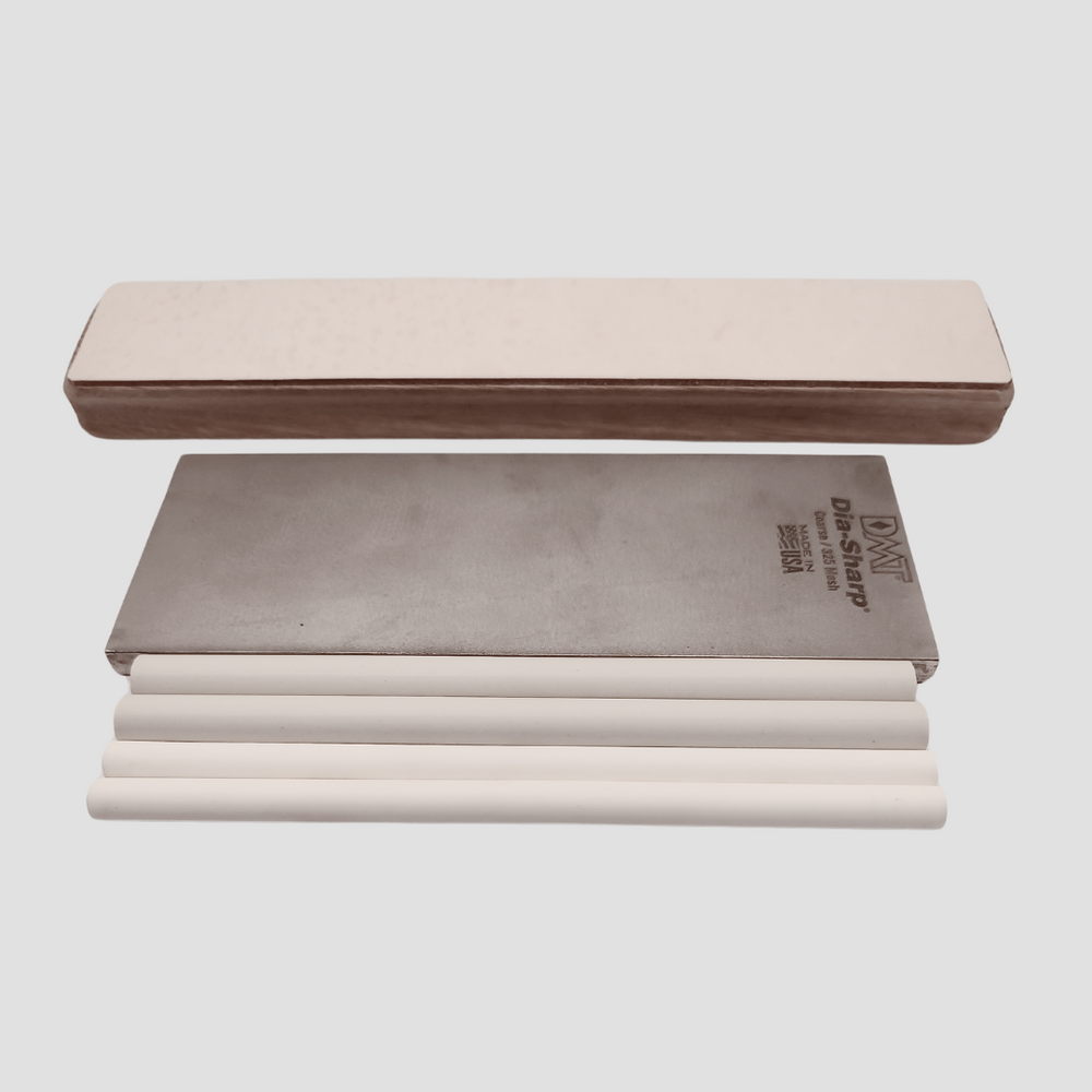 The little brother to the 2 stone station. This includes one American Made DMT double sided Diamond stone in Coarse 325/Fine 600, SSS Strop and our Ultimate Series rods. This has the same benefits as the Station, just in a smaller package and still will cover the majority of anything you got with the combinations of sharpening systems included. American made by SSS.